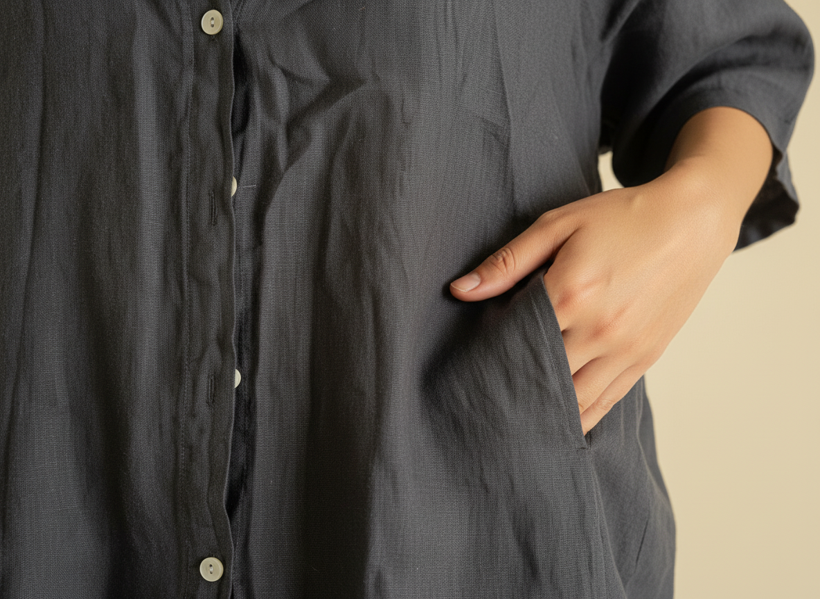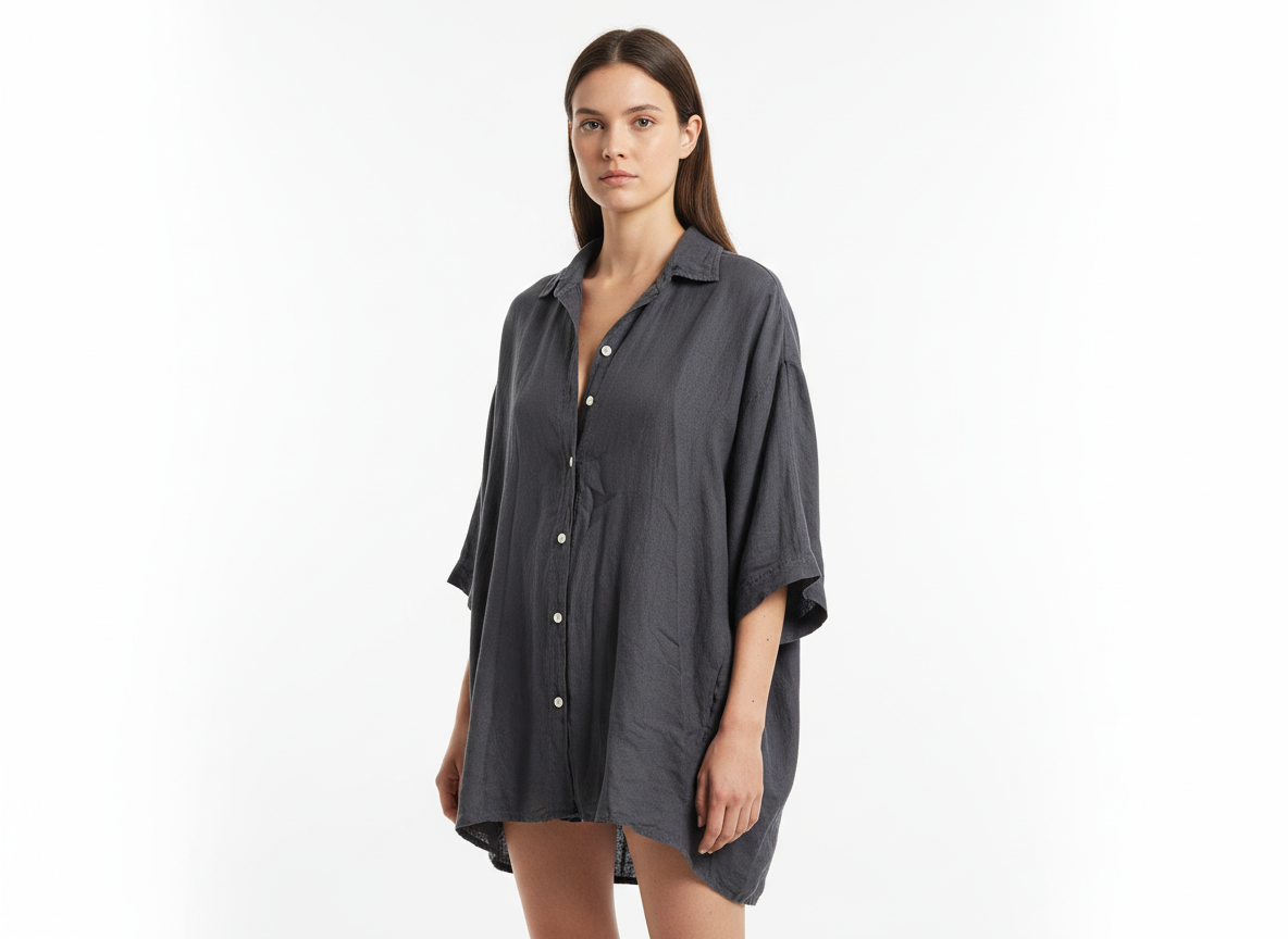 Camisa oversized de lino con corte relajado y estilo contemporáneo. Su diseño amplio y fluido, con bolsillos escondidos y junto con el tejido natural del lino, ofrece comodidad y frescura, mientras que la botonadura frontal y el cuello clásico mantienen un estilo minimalista. Perfecta para outfits urbanos o un look casual con actitud effortless.
