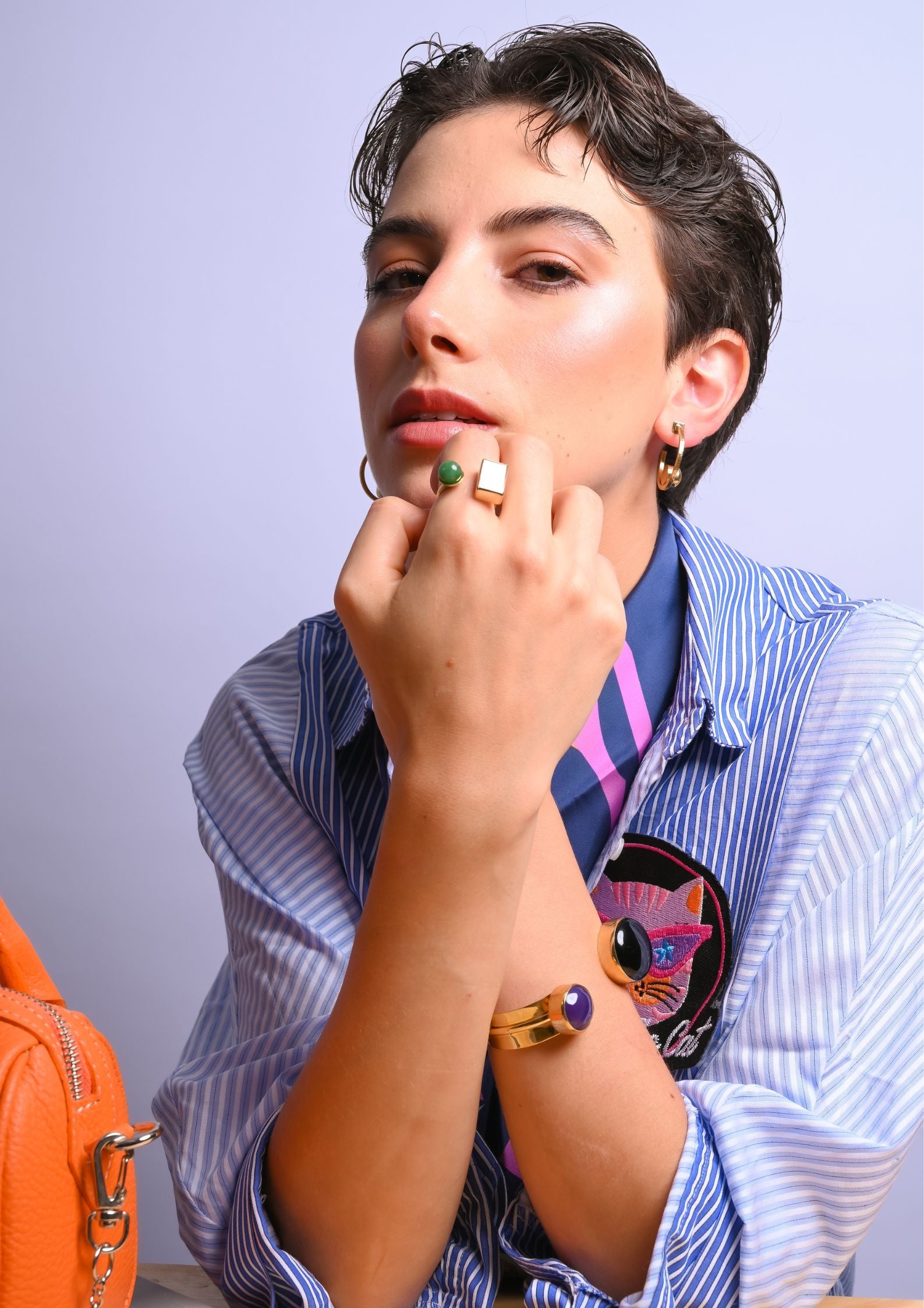 La Coleccion Talismán rinde homenaje al color y energía de las piedras combinadas con el universo creativo de los diseños, dando lugar a joyas únicas y contrastantes. Piezas elaboradas a mano expresando un enfoque contemporáneo de joyería fina.